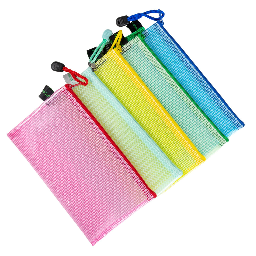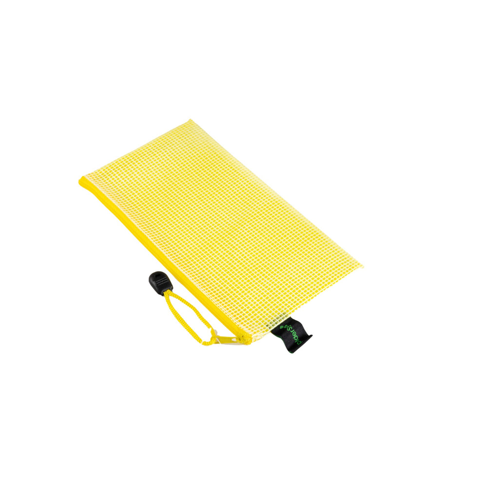 Das strapazierfähige EVA-Mesh ist geschmeidig, langlebig und vollständig PVC-frei – ganz ohne Weichmacher. Die leicht transparente Oberfläche ermöglicht einen schnellen Blick auf den Inhalt. Der stabile Textil-Reißverschluss mit Metallgleiter ist farblich auf die Folie abgestimmt – wahlweise in farblos transparent mit hellblauem Reißverschluss oder in farbigem Mesh mit farblich passendem Reißverschluss. Die integrierte Halteschlaufe sorgt für zusätzlichen Komfort unterwegs.