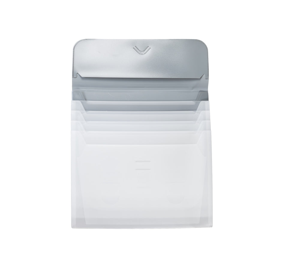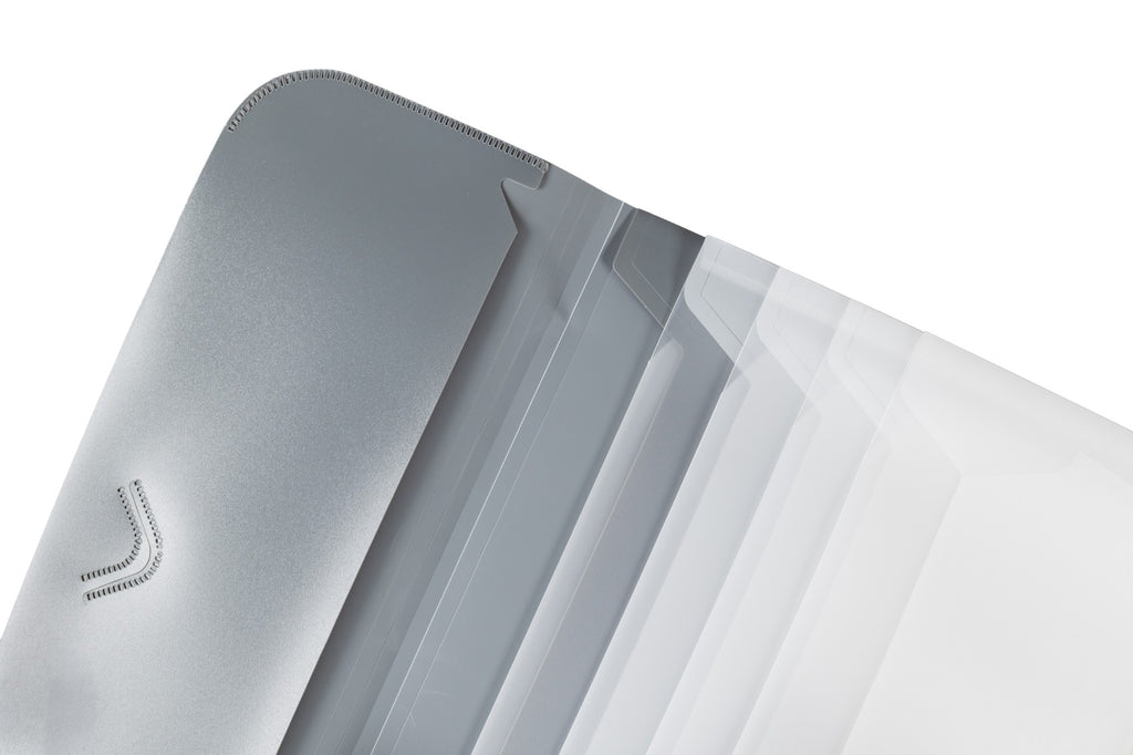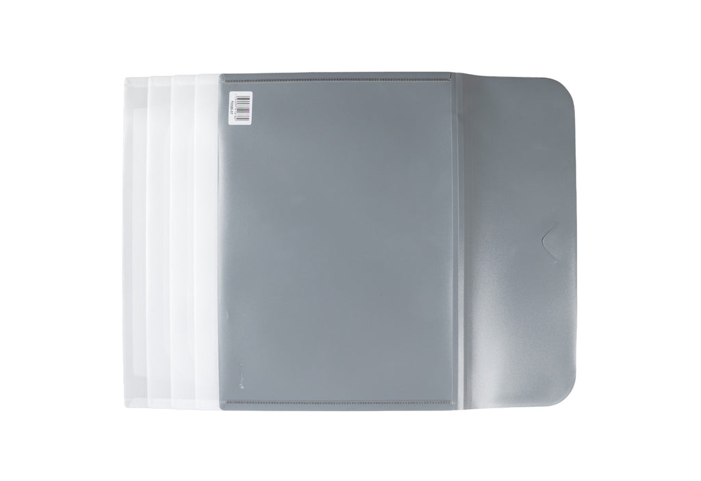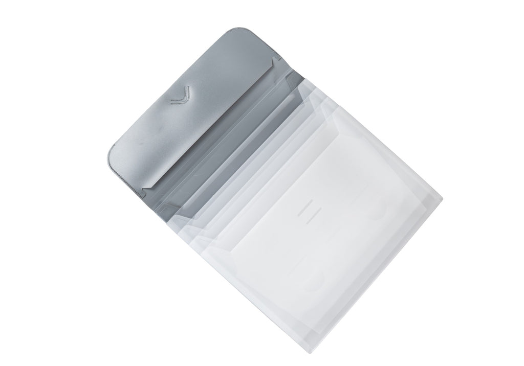 Schubtaschen-Mappe, 4 ausziehbare Taschen für A4 quer, geeignet zur vertikalen Aufhängung, Einsteckverschluss für variable Füllhöhe